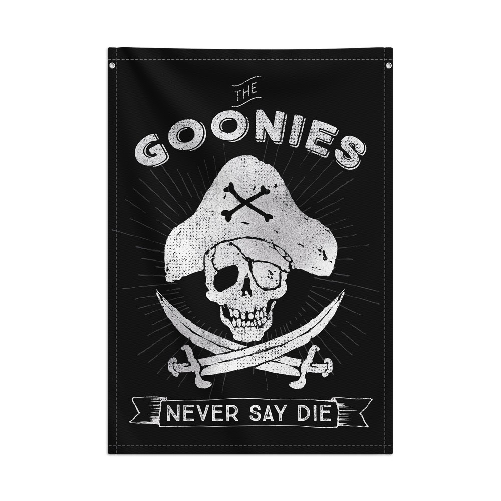 Banderola The Goonies Never Say Die diseño oficial.