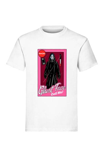 Camiseta Ghost Face Scream Doll Package de algodón, cómoda y perfecta para fans del terror.