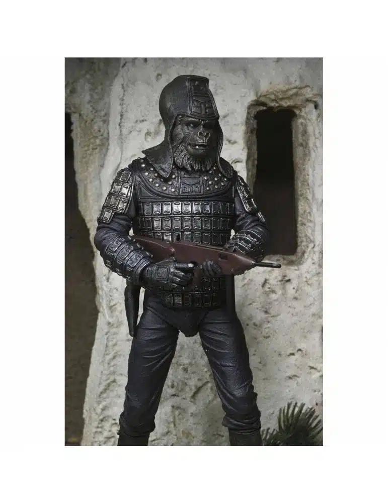 Planet of the Apes General Ursus figura coleccionable 18 cm ofrece una representación detallada del emblemático líder militar visto en la saga clásica de El Planeta de los Simios. Su diseño muestra la armadura característica, el casco agresivo y la expresión firme que define su personalidad fuerte y autoritaria. La figura transmite disciplina, liderazgo y ese estilo visual inconfundible del cine retro de ciencia ficción.