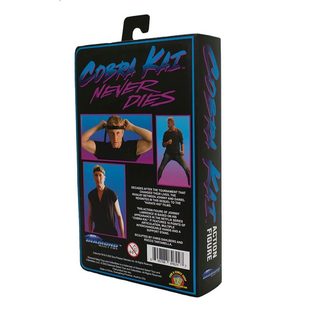 Diamond Select Toys Johnny Lawrence VHS figura 18 cm Cobra Kai SDCC 2022 Exclusive es una pieza imprescindible para los fans de la serie Cobra Kai y del universo Karate Kid. Esta edición especial destaca por su presentación estilo VHS y su carácter exclusivo de la San Diego Comic-Con 2022. Desde el primer momento, la figura transmite nostalgia, actitud y ese espíritu rebelde que define a Johnny Lawrence.