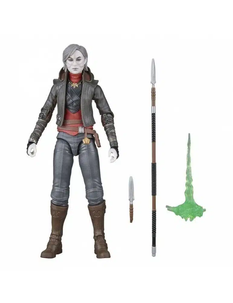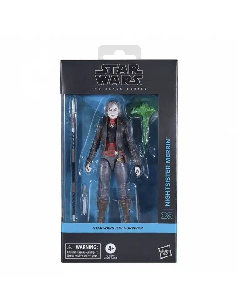 La figura Merrin destaca por su diseño fiel al personaje: vestimenta tradicional de Dathomir, tonos oscuros, maquillaje característico y acabados premium que realzan su presencia. Sus articulaciones permiten posar la figura en posturas dinámicas, calmadas o rituales, lo que la convierte en una pieza versátil para vitrinas y dioramas. Como producto oficial de Star Wars The Black Series, ofrece calidad, fidelidad al material original y un acabado que encaja perfectamente con otras figuras de la colección.