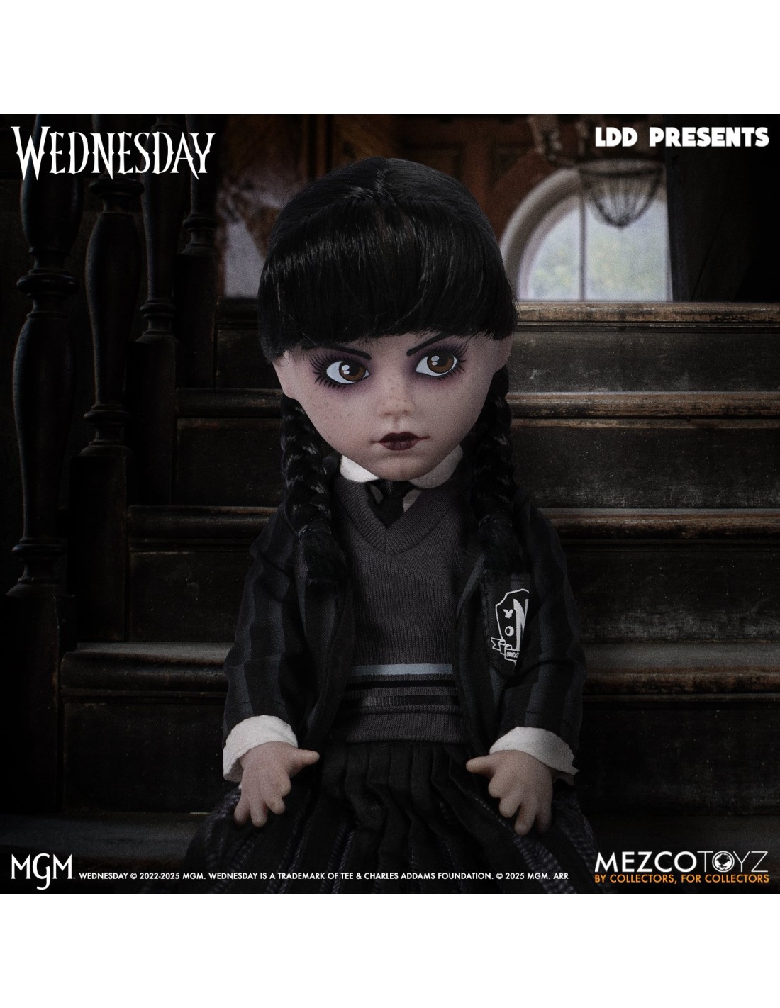 Mezco Toyz Wednesday Uniform figura 25,5 cm Living Dead Dolls es una pieza imprescindible para los fans de la serie Wednesday y del universo más oscuro y elegante del coleccionismo. Esta versión del personaje destaca por su estética icónica, su uniforme característico y su personalidad fría e inconfundible. Desde el primer momento, la figura transmite ese estilo gótico y esa presencia tan reconocible que han convertido a Wednesday en un fenómeno.