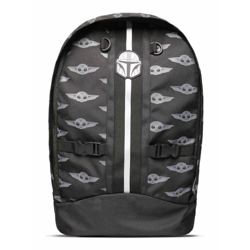 Mochila Mandalorian Grogu Star Wars con diseño galáctico, ideal para llevar libros y objetos personales con un toque friki inspirado en la saga.