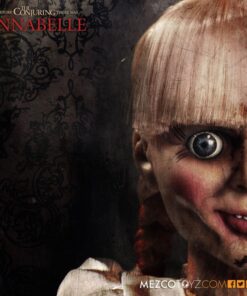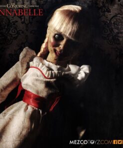 La muñeca Annabelle 45 cm réplica oficial Mezco Toyz destaca por su acabado realista en el rostro, la mirada vacía y un vestuario perfectamente esculpido que refleja con exactitud al personaje de la saga. Su tamaño la convierte en una presencia imponente dentro de cualquier colección, ideal para quienes buscan un objeto único que combine fidelidad cinematográfica y atmósfera escalofriante.