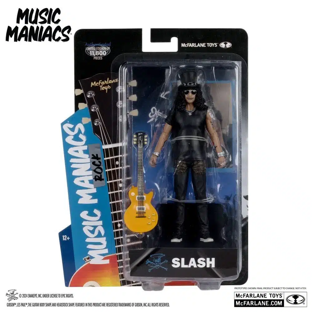 Slash Music Maniacs figura coleccionable 6″ rinde homenaje a uno de los guitarristas más icónicos del rock. Su pose refleja actitud, talento y energía, mientras la guitarra reproduce su estilo inconfundible. La figura captura detalles emblemáticos como el sombrero, las gafas y el cabello rizado, lo que permite reconocer al artista al instante. Gracias a su tamaño compacto, encaja fácilmente en vitrinas musicales, escritorios o colecciones dedicadas al rock.