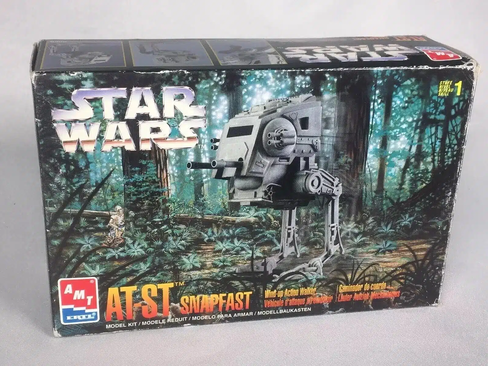 Maqueta AT-ST AMT ERTL SnapFast original de 1997, completamente nueva y precintada. Pieza vintage imprescindible para coleccionistas y fans de las maquetas clásicas de Star Wars.