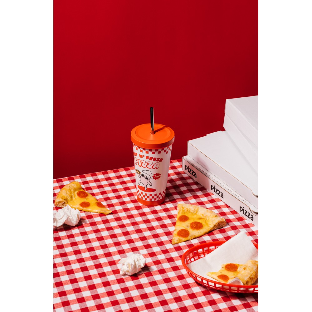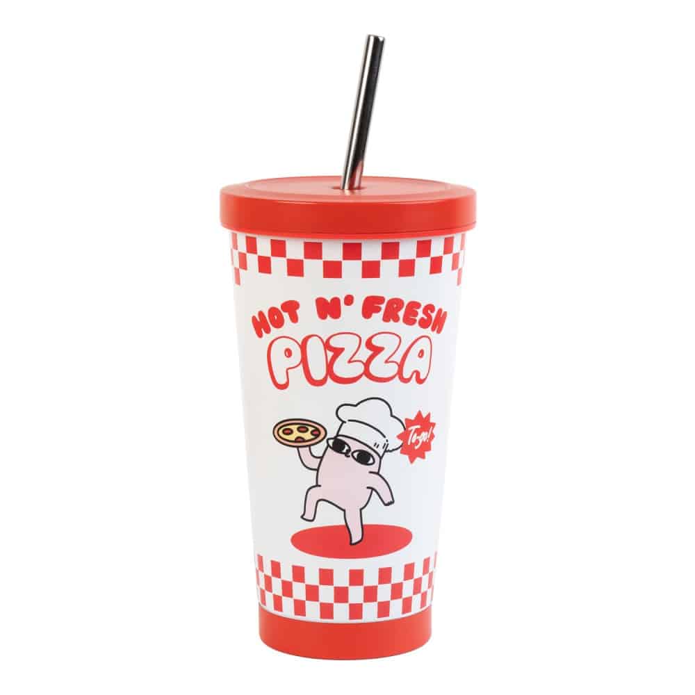 Vaso de acero Ketnipz Hot N Fresh Pizza de 550 ml con pajita reutilizable, ideal para bebidas y fans del merchandising kawaii.